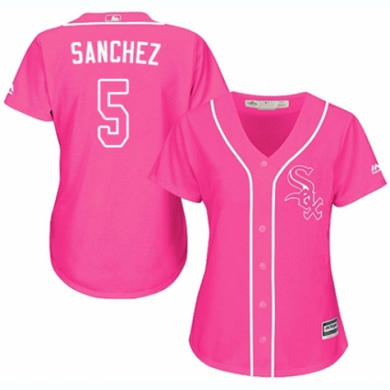 Women's Majestic Chicago White Sox #5 Yolmer Sanchez Replica Pink Fashion Cool Base MLB Jersey