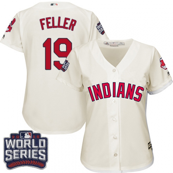 Home>MLB>Cleveland Indians>Bob Feller>Women's Majestic Cleveland Indians #19 Bob Feller Authentic Cream Alternate 2 2016 World Series Bound Cool Base MLB Jersey