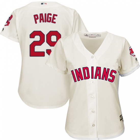 Women's Majestic Cleveland Indians #29 Satchel Paige Replica Cream Alternate 2 Cool Base MLB Jersey