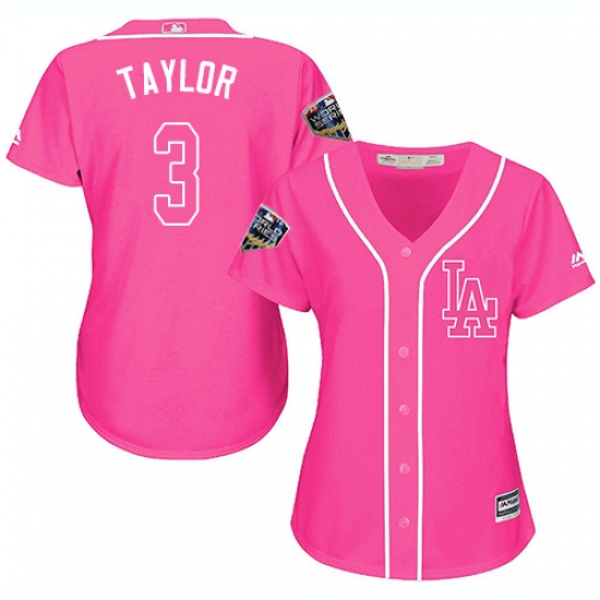 Women's Majestic Los Angeles Dodgers #3 Chris Taylor Authentic Pink Fashion Cool Base 2018 World Series MLB Jersey