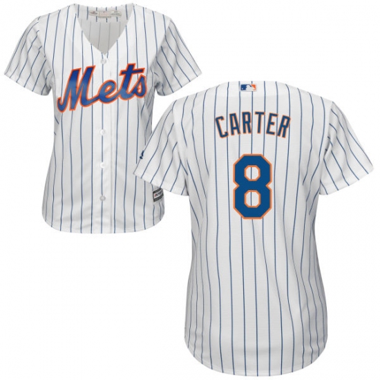 Home>MLB>New York Mets>Gary Carter>Women's Majestic New York Mets #8 Gary Carter Authentic White Home Cool Base MLB Jersey