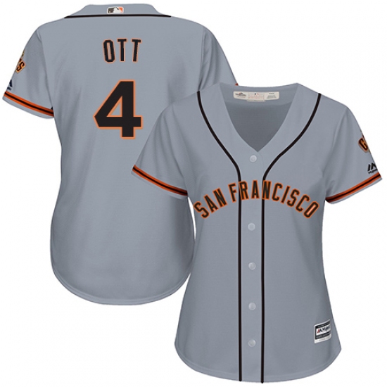 Women's Majestic San Francisco Giants #4 Mel Ott Authentic Grey Road Cool Base MLB Jersey