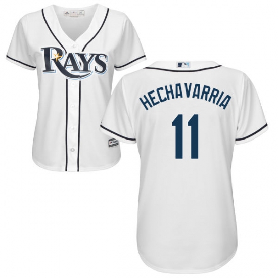 Home>MLB>Tampa Bay Rays>Adeiny Hechavarria>Women's Majestic Tampa Bay Rays #11 Adeiny Hechavarria Authentic White Home Cool Base MLB Jersey