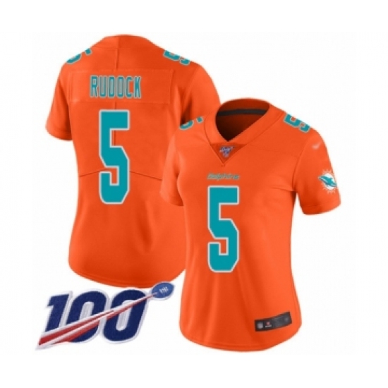 >Women's Miami Dolphins #5 Jake Rudock Limited Orange Inverted Legend 100th Season Football Jersey