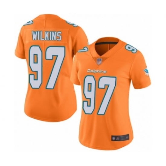 >Women's Miami Dolphins #97 Christian Wilkins Limited Orange Rush Vapor Untouchable Football Jersey