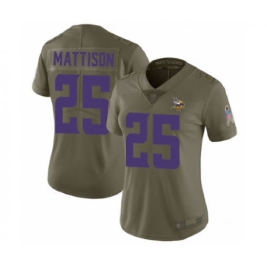 >Women's Minnesota Vikings #25 Alexander Mattison Limited Olive 2017 Salute to Service Football Jersey