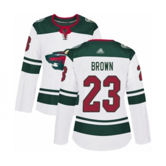 Women's Minnesota Wild #23 J.T. Brown Authentic White Away Hockey Jersey