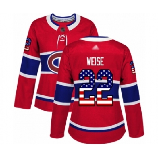 Women's Montreal Canadiens #22 Dale Weise Authentic Red USA Flag Fashion Hockey Jersey