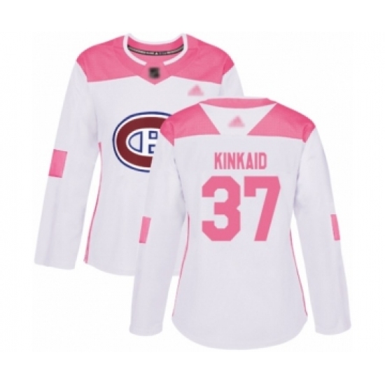 >Women's Montreal Canadiens #37 Keith Kinkaid Authentic White Pink Fashion Hockey Jersey