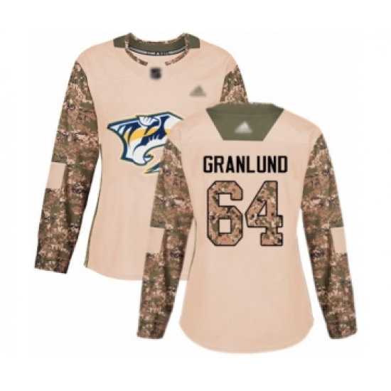 >Women's Nashville Predators #64 Mikael Granlund Authentic Camo Veterans Day Practice Hockey Jersey