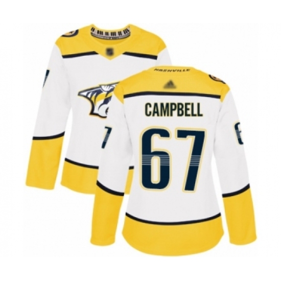 Women's Nashville Predators #67 Alexander Campbell Authentic White Away Hockey Jersey
