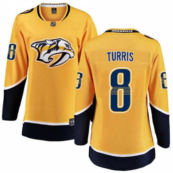 >Women's Nashville Predators #8 Kyle Turris Fanatics Branded Gold Home Breakaway NHL Jersey