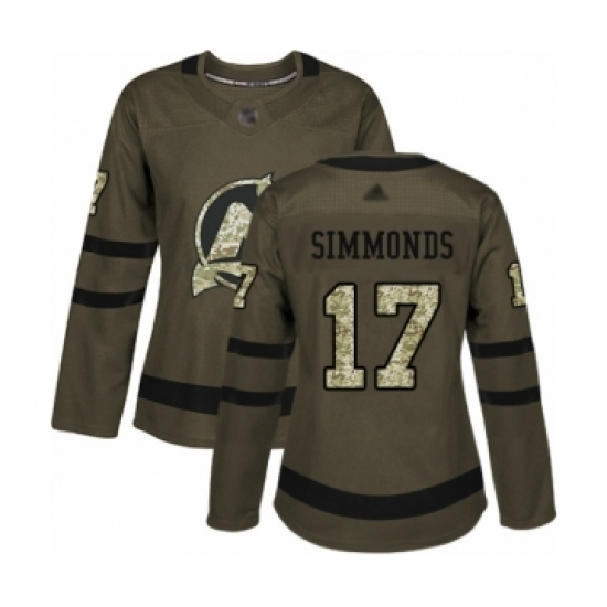 >Women's New Jersey Devils #17 Wayne Simmonds Authentic Green Salute to Service Hockey Jersey
