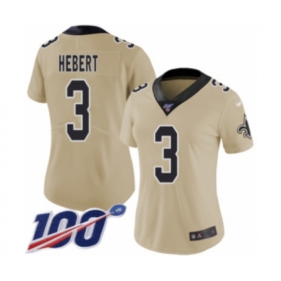 >Women's New Orleans Saints #3 Bobby Hebert Limited Gold Inverted Legend 100th Season Football Jersey