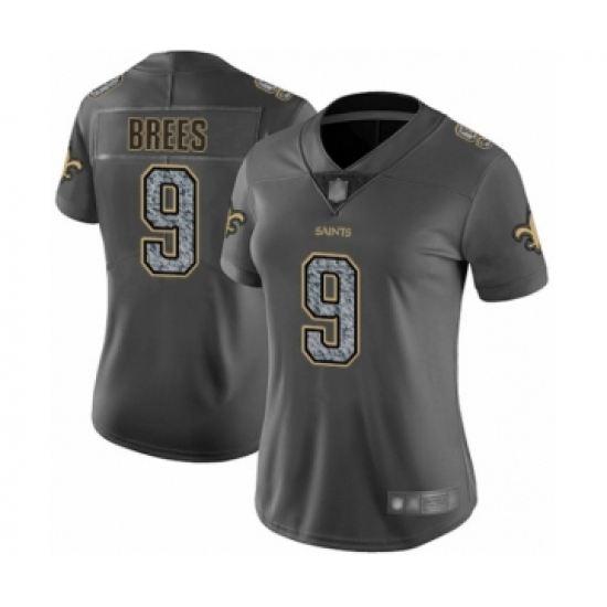 >Women's New Orleans Saints #9 Drew Brees Limited Gray Static Fashion Football Jersey