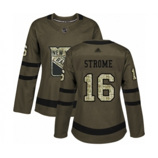 >Women's New York Rangers #16 Ryan Strome Authentic Green Salute to Service Hockey Jersey
