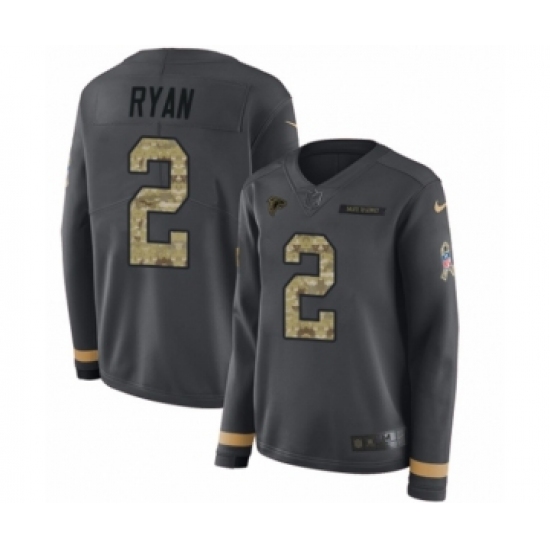 Women's Nike Atlanta Falcons #2 Matt Ryan Limited Black Salute to Service Therma Long Sleeve NFL Jersey