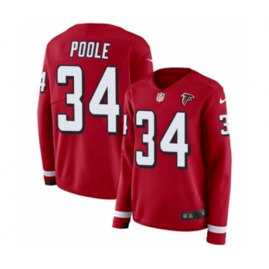 >Women's Nike Atlanta Falcons #34 Brian Poole Limited Red Therma Long Sleeve NFL Jersey