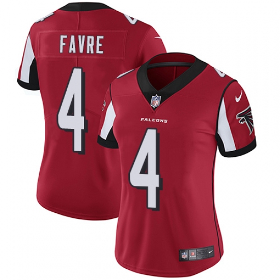 Women's Nike Atlanta Falcons #4 Brett Favre Red Team Color Vapor Untouchable Limited Player NFL Jersey