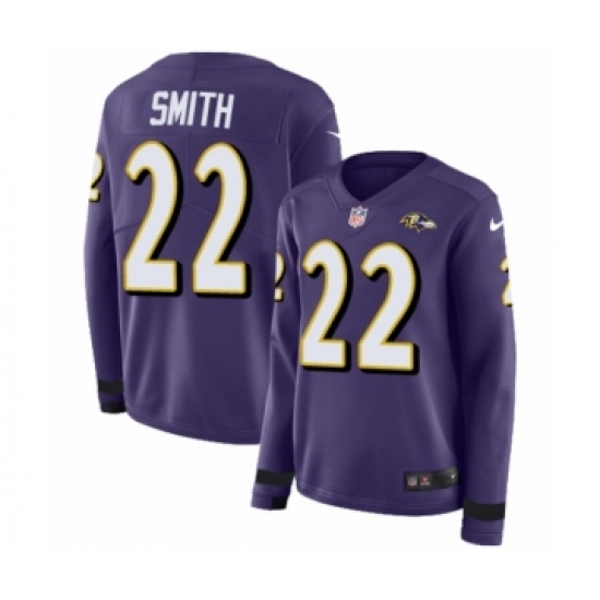 >Women's Nike Baltimore Ravens #22 Jimmy Smith Limited Purple Therma Long Sleeve NFL Jersey
