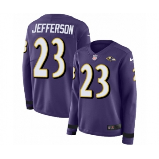 >Women's Nike Baltimore Ravens #23 Tony Jefferson Limited Purple Therma Long Sleeve NFL Jersey