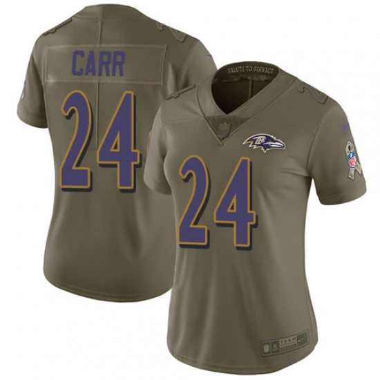 Home>NFL>Baltimore Ravens>Brandon Carr>Women's Nike Baltimore Ravens #24 Brandon Carr Limited Olive 2017 Salute to Service NFL Jersey