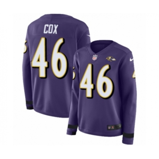 Women's Nike Baltimore Ravens #46 Morgan Cox Limited Purple Therma Long Sleeve NFL Jersey