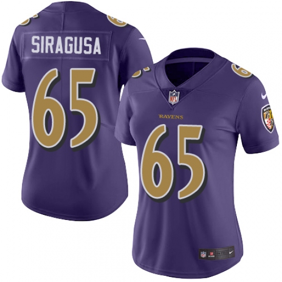Home>NFL>Baltimore Ravens>Nico Siragusa>Women's Nike Baltimore Ravens #65 Nico Siragusa Limited Purple Rush Vapor Untouchable NFL Jersey