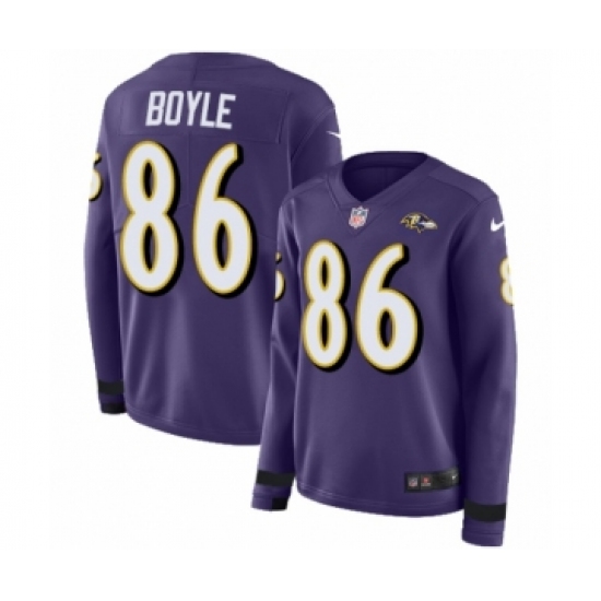 Women's Nike Baltimore Ravens #86 Nick Boyle Limited Purple Therma Long Sleeve NFL Jersey