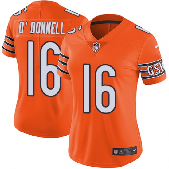 Home>NFL>Chicago Bears>Pat O'Donnell>Women's Nike Chicago Bears #16 Pat O'Donnell Limited Orange Rush Vapor Untouchable NFL Jersey
