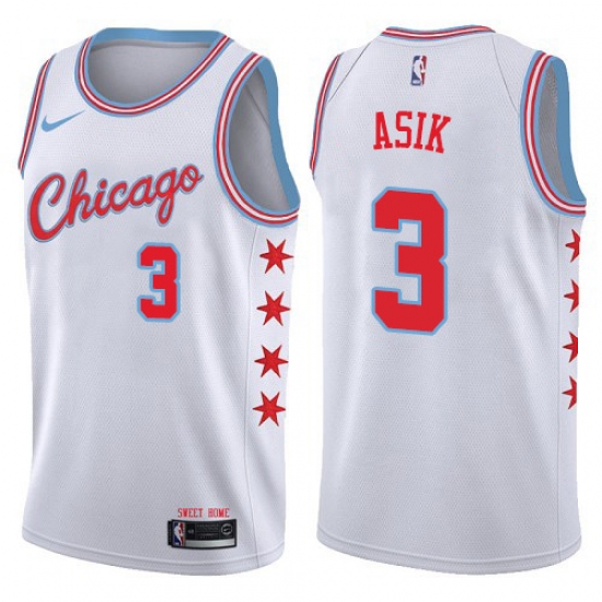 Women's Nike Chicago Bulls #3 Omer Asik Swingman White NBA Jersey - City Edition