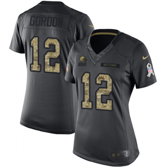 Home>NFL>Cleveland Browns>Josh Gordon>Women's Nike Cleveland Browns #12 Josh Gordon Limited Black 2016 Salute to Service NFL Jersey