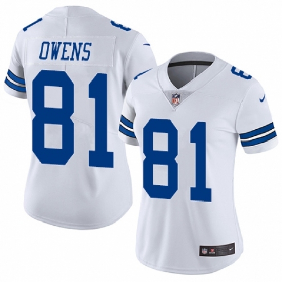 >Women's Nike Dallas Cowboys #81 Terrell Owens White Vapor Untouchable Limited Player NFL Jersey