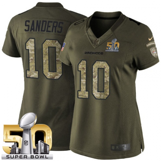 Home>NFL>Denver Broncos>Emmanuel Sanders>Women's Nike Denver Broncos #10 Emmanuel Sanders Elite Green Salute to Service Super Bowl 50 Bound NFL Jersey