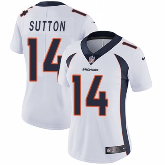 >Women's Nike Denver Broncos #14 Courtland Sutton White Vapor Untouchable Limited Player NFL Jersey