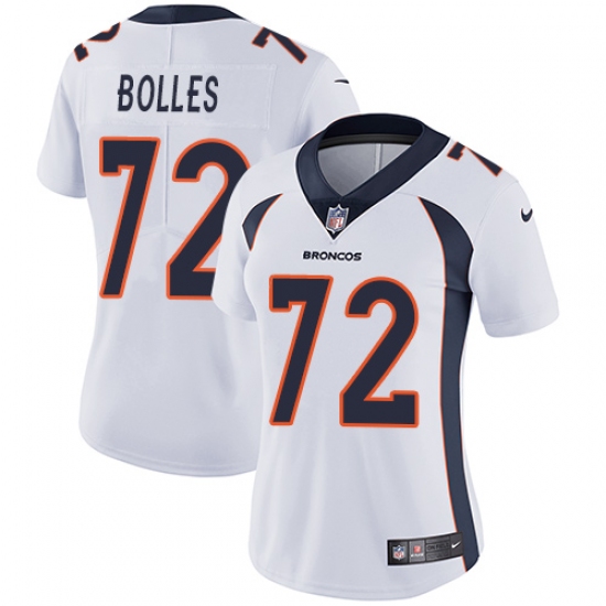 Women's Nike Denver Broncos #72 Garett Bolles White Vapor Untouchable Limited Player NFL Jersey