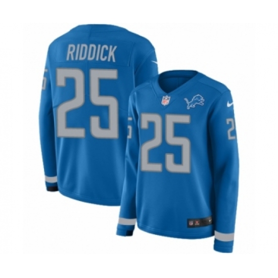 Women's Nike Detroit Lions #25 Theo Riddick Limited Blue Therma Long Sleeve NFL Jersey