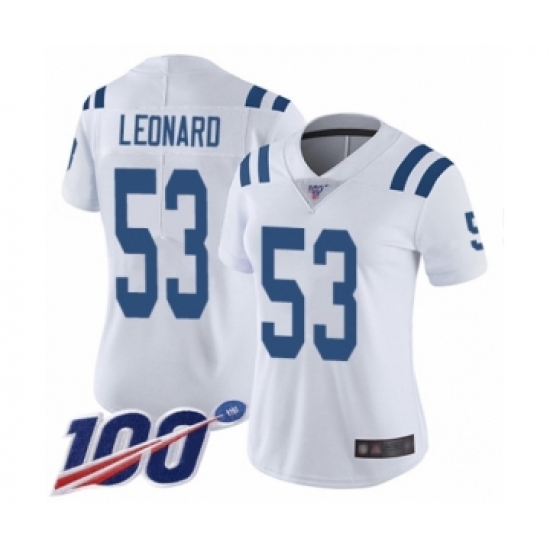 Women's Nike Indianapolis Colts #53 Darius Leonard White Vapor Untouchable Limited Player 100th Season NFL Jersey