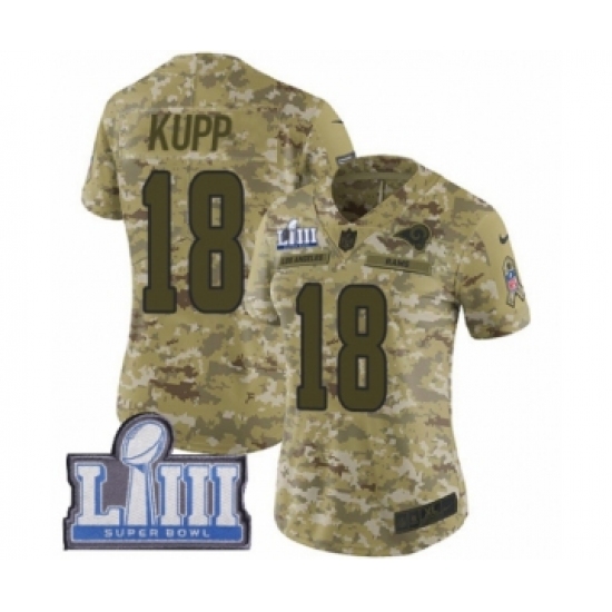 >Women's Nike Los Angeles Rams #18 Cooper Kupp Limited Camo 2018 Salute to Service Super Bowl LIII Bound NFL Jersey