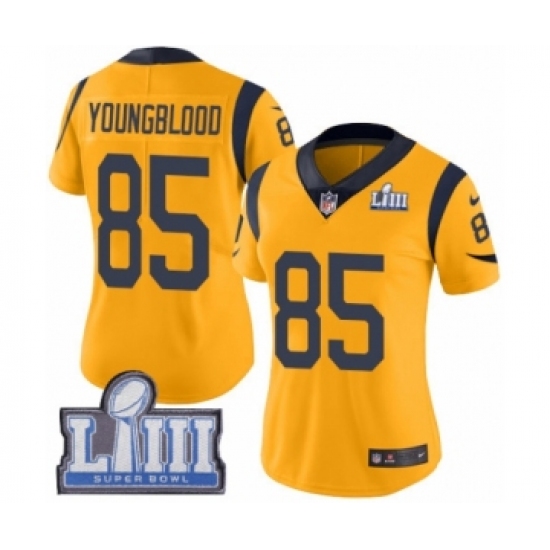 >Women's Nike Los Angeles Rams #85 Jack Youngblood Limited Gold Rush Vapor Untouchable Super Bowl LIII Bound NFL Jersey