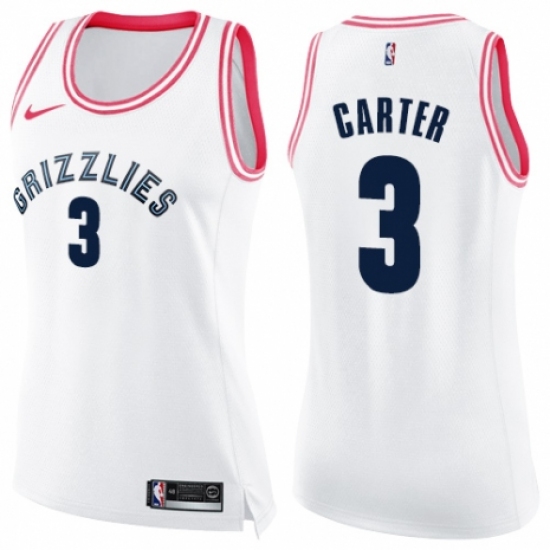 Women's Nike Memphis Grizzlies #3 Jevon Carter Swingman White/Pink Fashion NBA Jersey