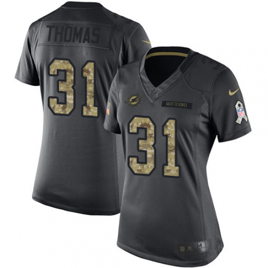 Home>NFL>Miami Dolphins>Michael Thomas>Women's Nike Miami Dolphins #31 Michael Thomas Limited Black 2016 Salute to Service NFL Jersey