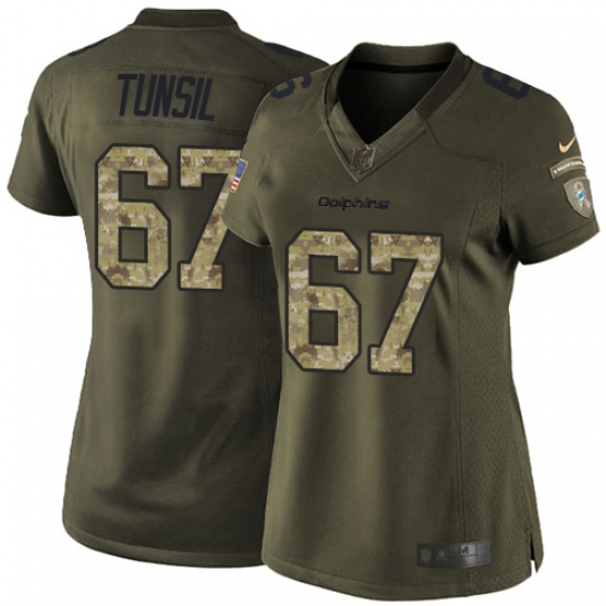 Women's Nike Miami Dolphins #67 Laremy Tunsil Elite Green Salute to Service NFL Jersey