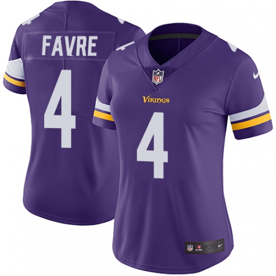 Women's Nike Minnesota Vikings #4 Brett Favre Purple Team Color Vapor Untouchable Limited Player NFL Jersey