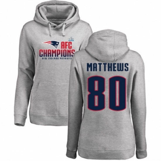 Women's Nike New England Patriots #80 Jordan Matthews Heather Gray 2017 AFC Champions Pullover Hoodie