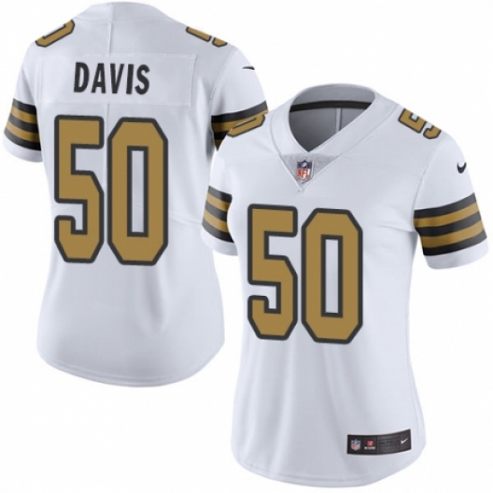 >Women's Nike New Orleans Saints #50 DeMario Davis Limited White Rush Vapor Untouchable NFL Jersey