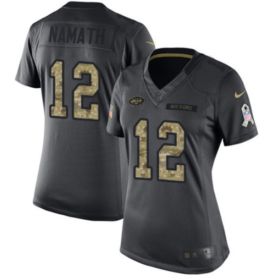 Home>NFL>New York Jets>Joe Namath>Women's Nike New York Jets #12 Joe Namath Limited Black 2016 Salute to Service NFL Jersey