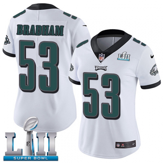 Women's Nike Philadelphia Eagles #53 Nigel Bradham White Vapor Untouchable Limited Player Super Bowl LII NFL Jersey