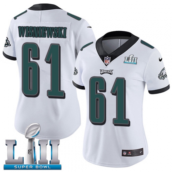 Home>NFL>Philadelphia Eagles>Stefen Wisniewski>Women's Nike Philadelphia Eagles #61 Stefen Wisniewski White Vapor Untouchable Limited Player Super Bowl LII NFL Jersey