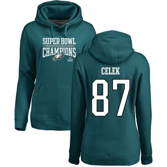 Women's Nike Philadelphia Eagles #87 Brent Celek Green Super Bowl LII Champions Pullover Hoodie